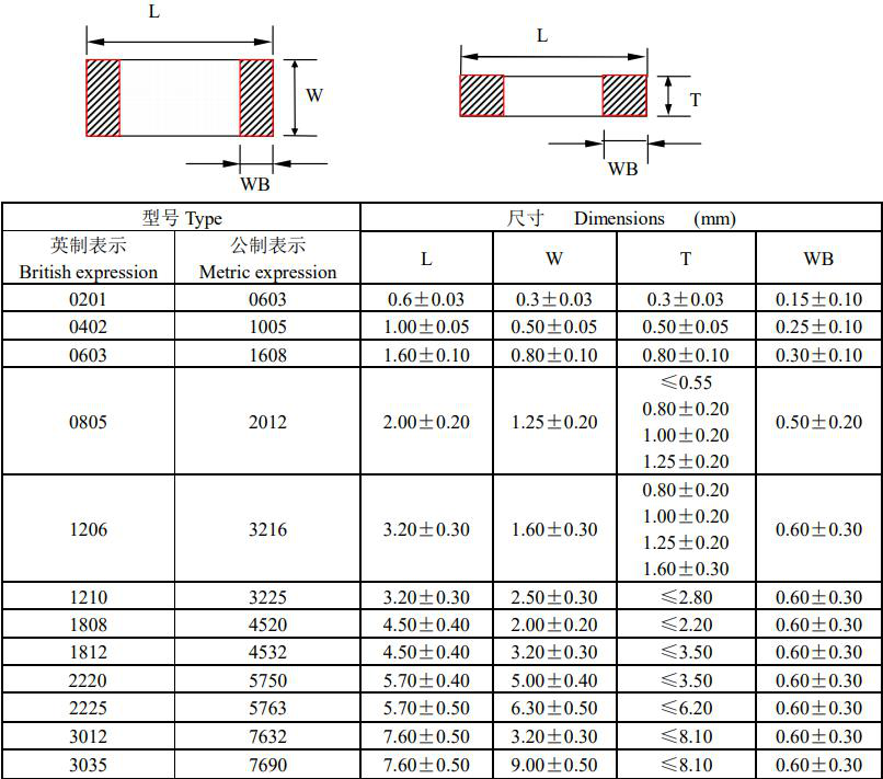 風華貼片電容結構尺寸圖如下