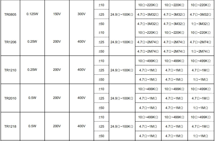 天二貼片高壓電阻規(guī)格書參考圖詳解如下