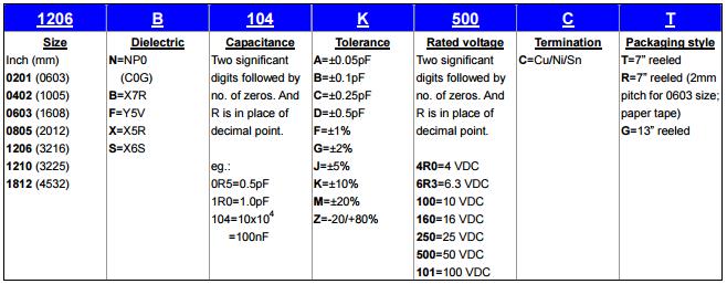 T :表示包裝代號 T:7英寸卷帶Q:10英寸卷帶 G:13英寸卷帶  H:13''卷軸50Kpcs僅用于0402  B:散裝  D:7''卷軸20Kpcs僅用于0402   A:僅7“卷軸15Kpcs為0402