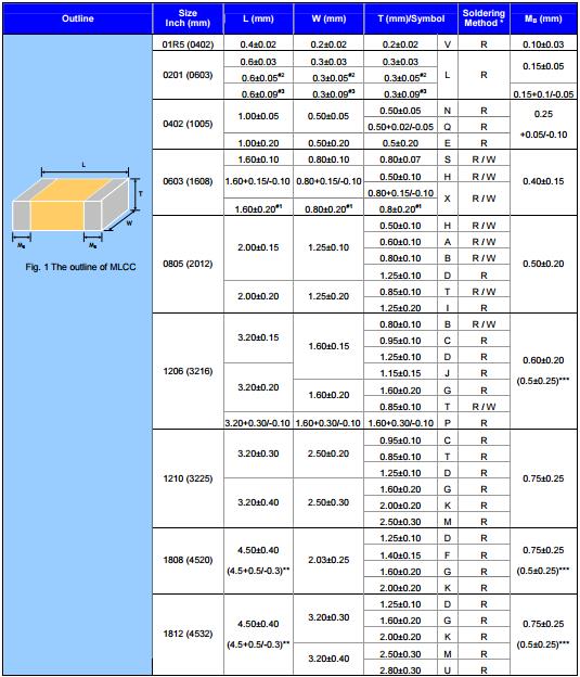 0201,0402,0603,0805,1206為常見封裝尺寸的華科貼片電容,容量范圍一般在0.5pF~1uF。1210,1812,1825,2225, 3012、3035為大規格華科貼片電容,容量范圍在1uF~100uF